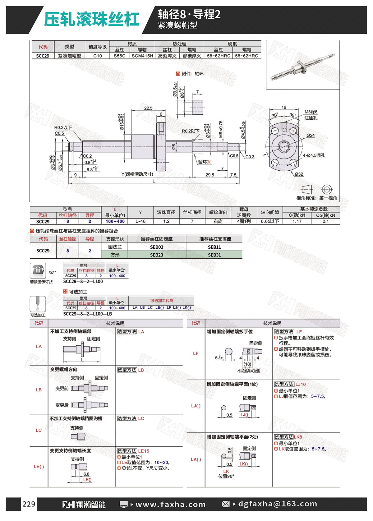 压轧滚珠丝杠 轴径8 导程2 紧凑螺帽型
