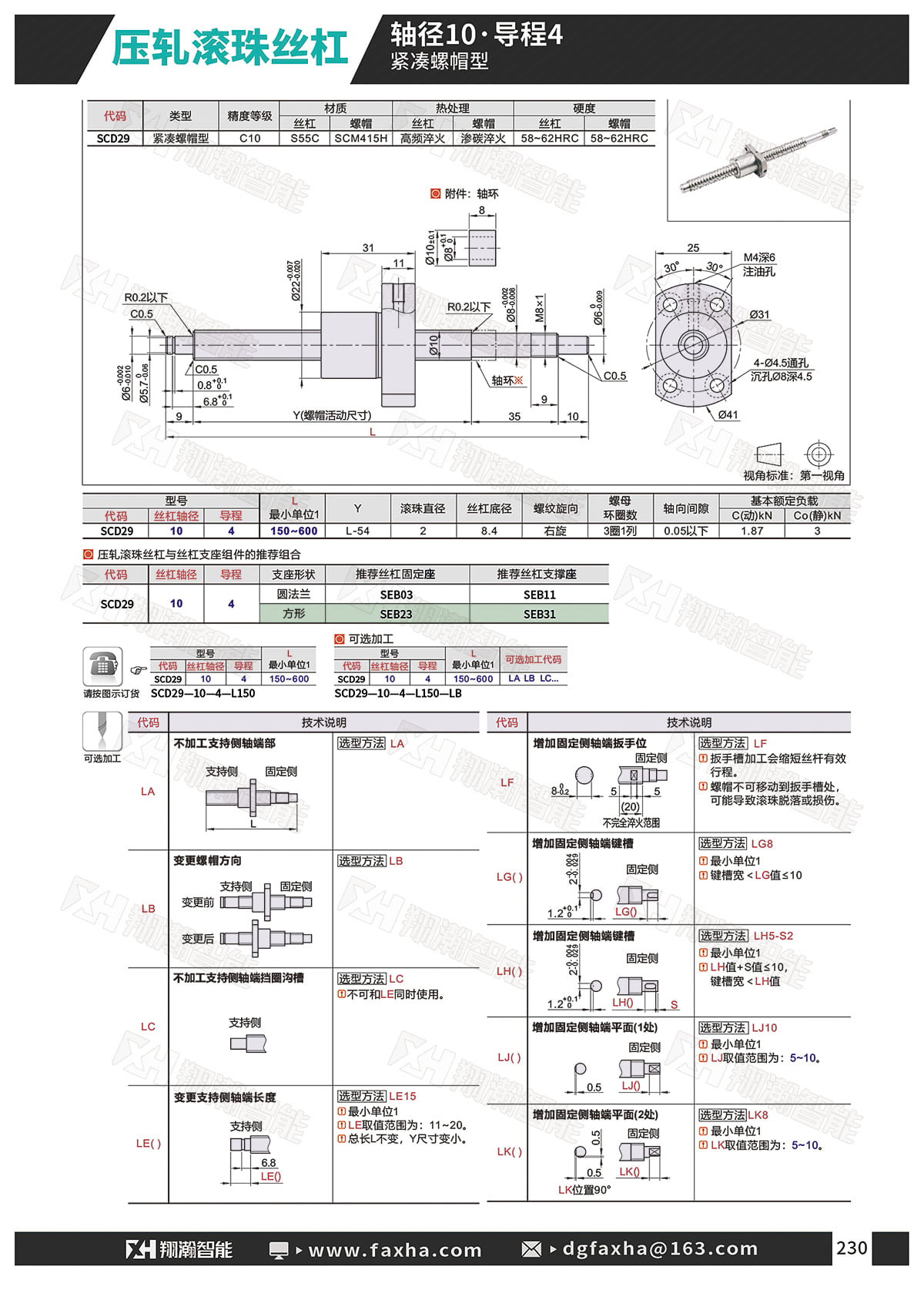 压轧滚珠丝杠 轴径10 导程4 紧凑螺帽型