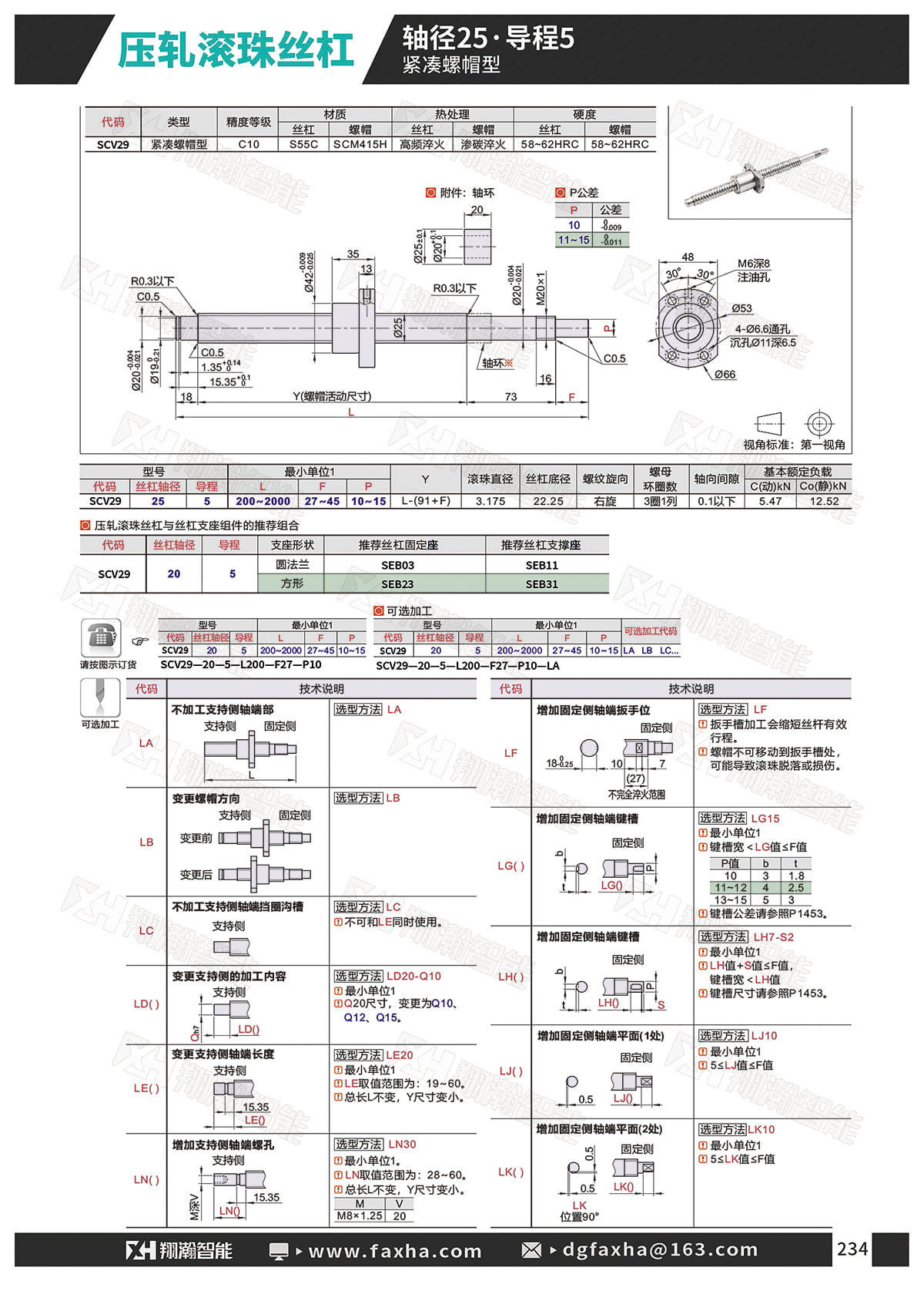 压轧滚珠丝杠 轴径25 导程5 紧凑螺帽型
