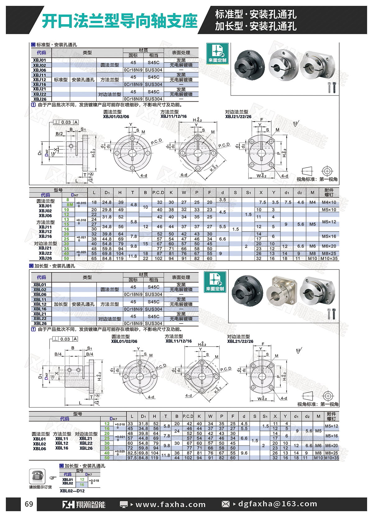 开口法兰型导向轴支座 标准型 安装孔通孔