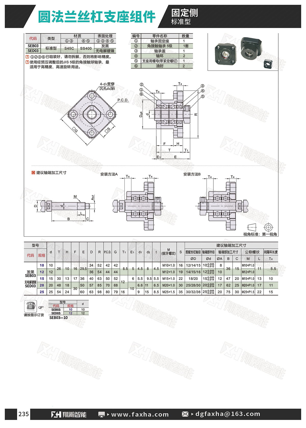 圆法兰丝杠支座组件 标准型 固定侧