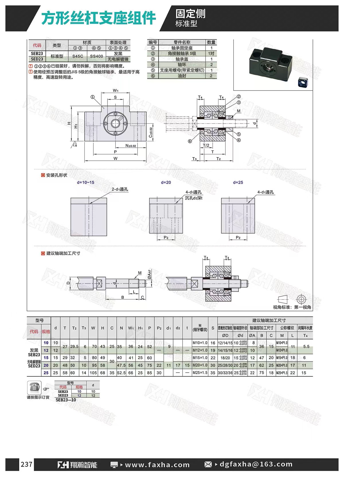 方形丝杠支座组件 标准型 固定侧