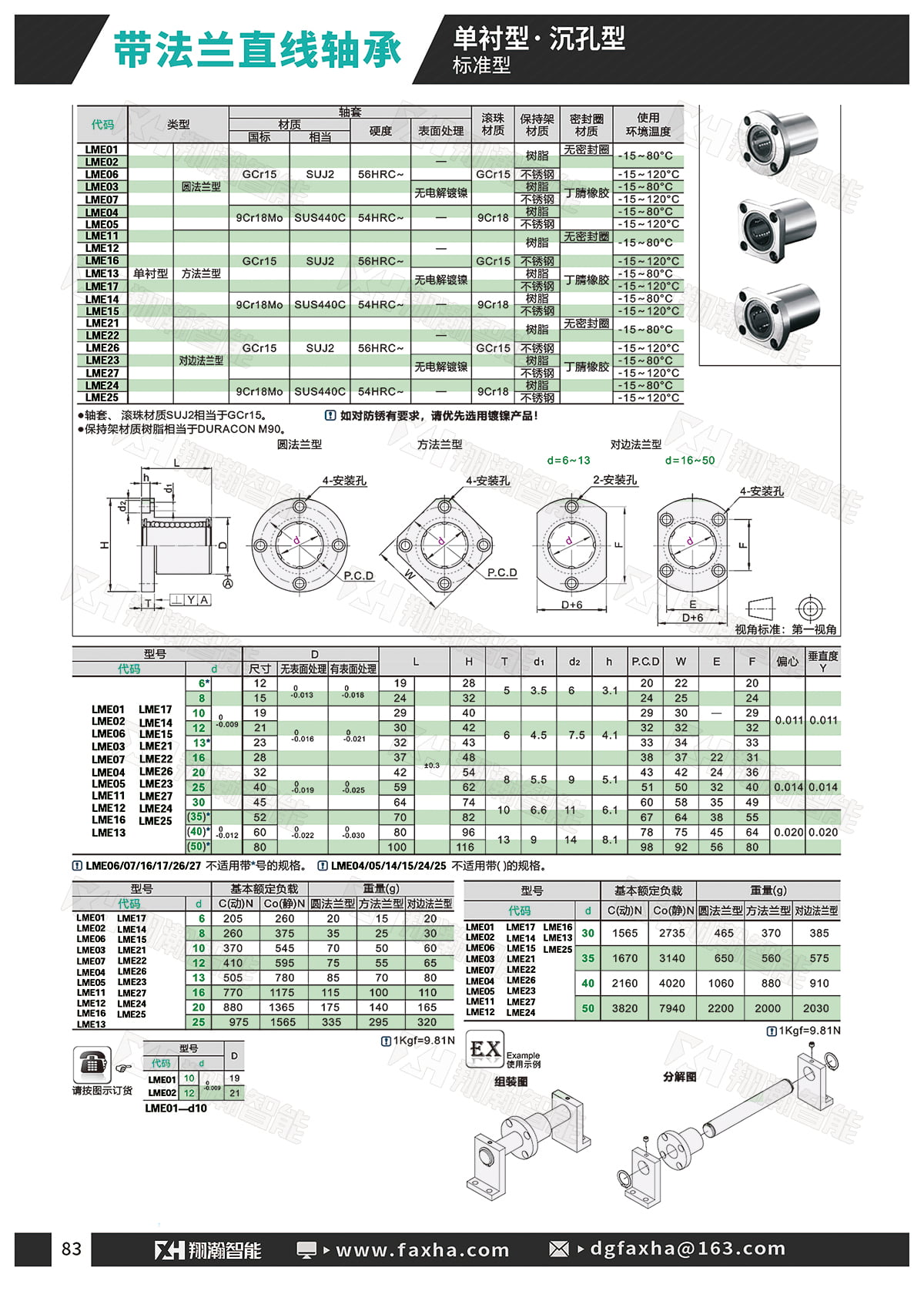 轴套/滚珠材质:SUJ2/SUS440C 密封圈材质:丁腈橡胶