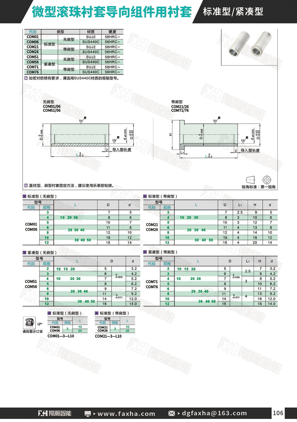 产品类型:标准型 紧凑型 衬套类型:带肩型 无肩型 材质:SUJ2 SUS440C 产品硬度:HRC56~ HRC58~ 常用型号: LOM01-d3~d12 LOM06-d3~d12 LOM21-d3~d12 LOM26-d3~d12 LOM51-d3~d12 LOM56-d3~d12 LOM71-d3~d12 LOM76-d3~d12