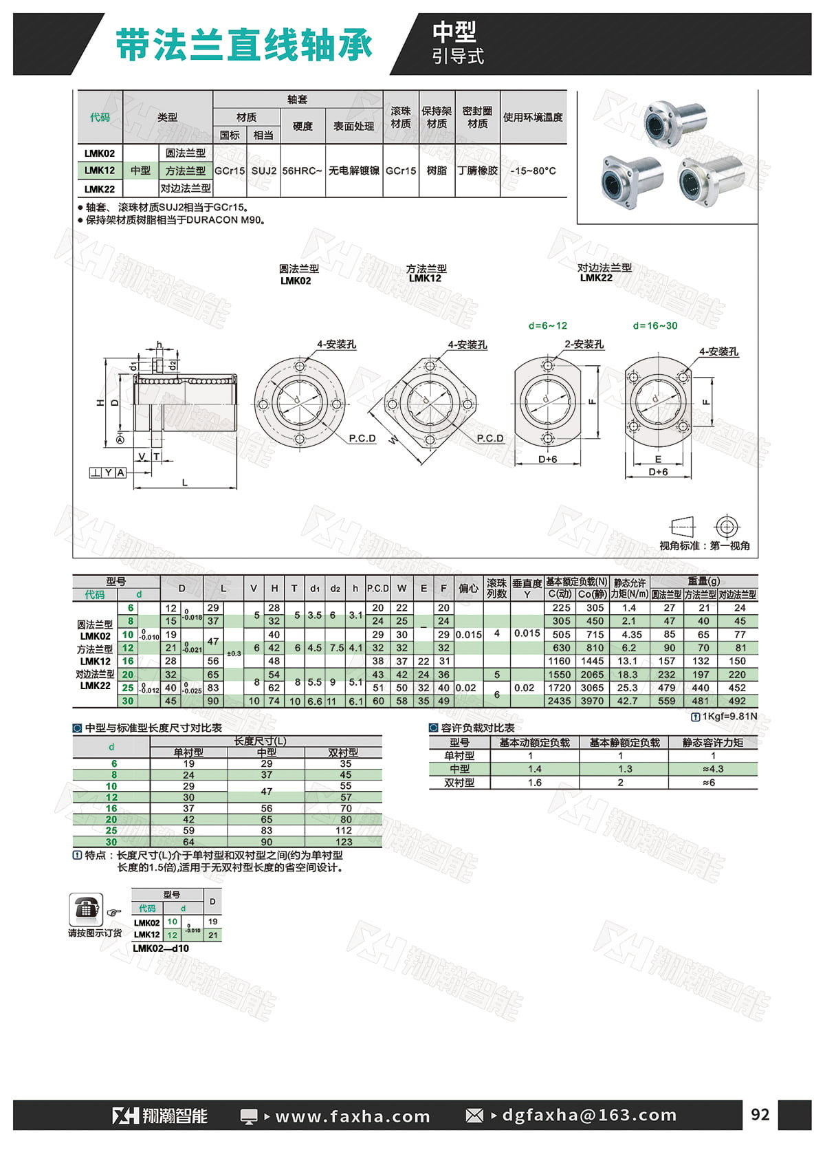轴套/滚珠材质:SUJ2 密封圈材质:丁腈橡胶 表面处理:无电解镀镍 产品种类:圆法兰型/方法兰型/对边法兰型 使用环境温度:-15~80℃ 产品型号:LMK02-d6~d30 LMK12-d6~d30 LMK22-d6~d30